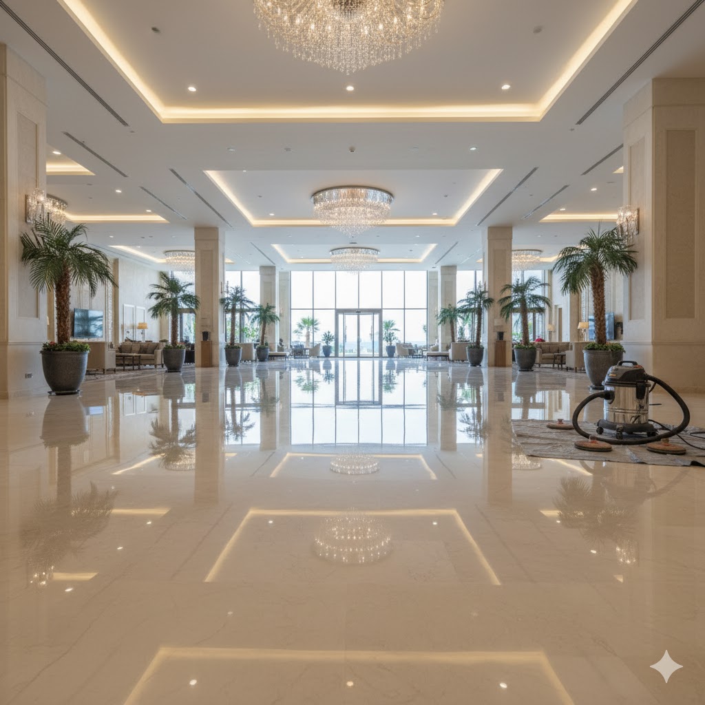 Lara bölgesindeki 5 yıldızlı otelde mermer zeminler, üç aşamalı silim ve parlatma yöntemiyle...